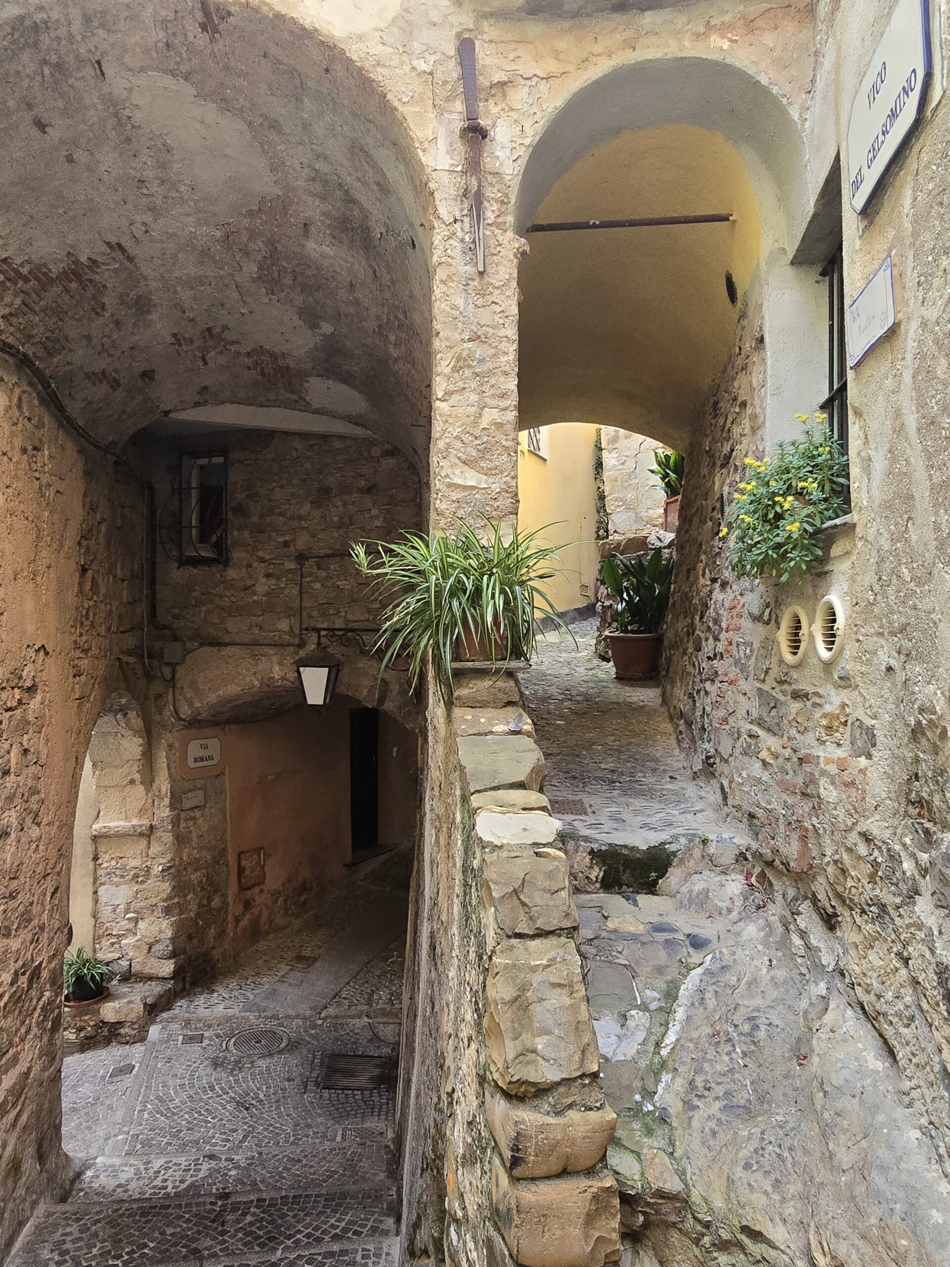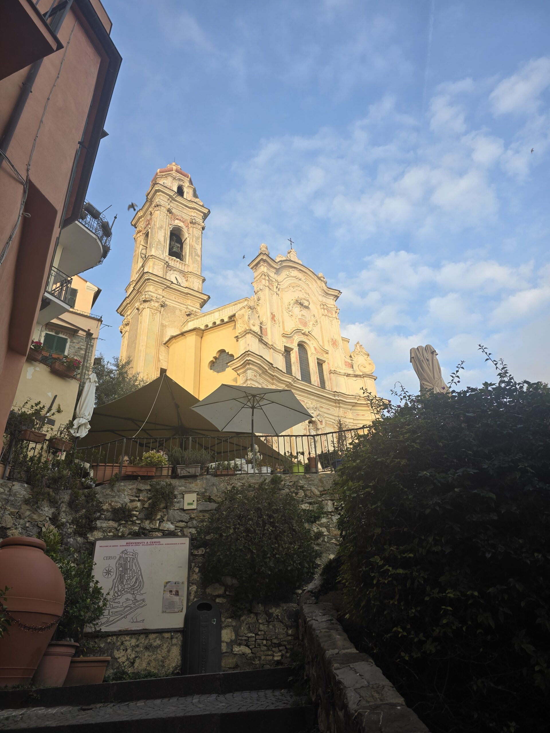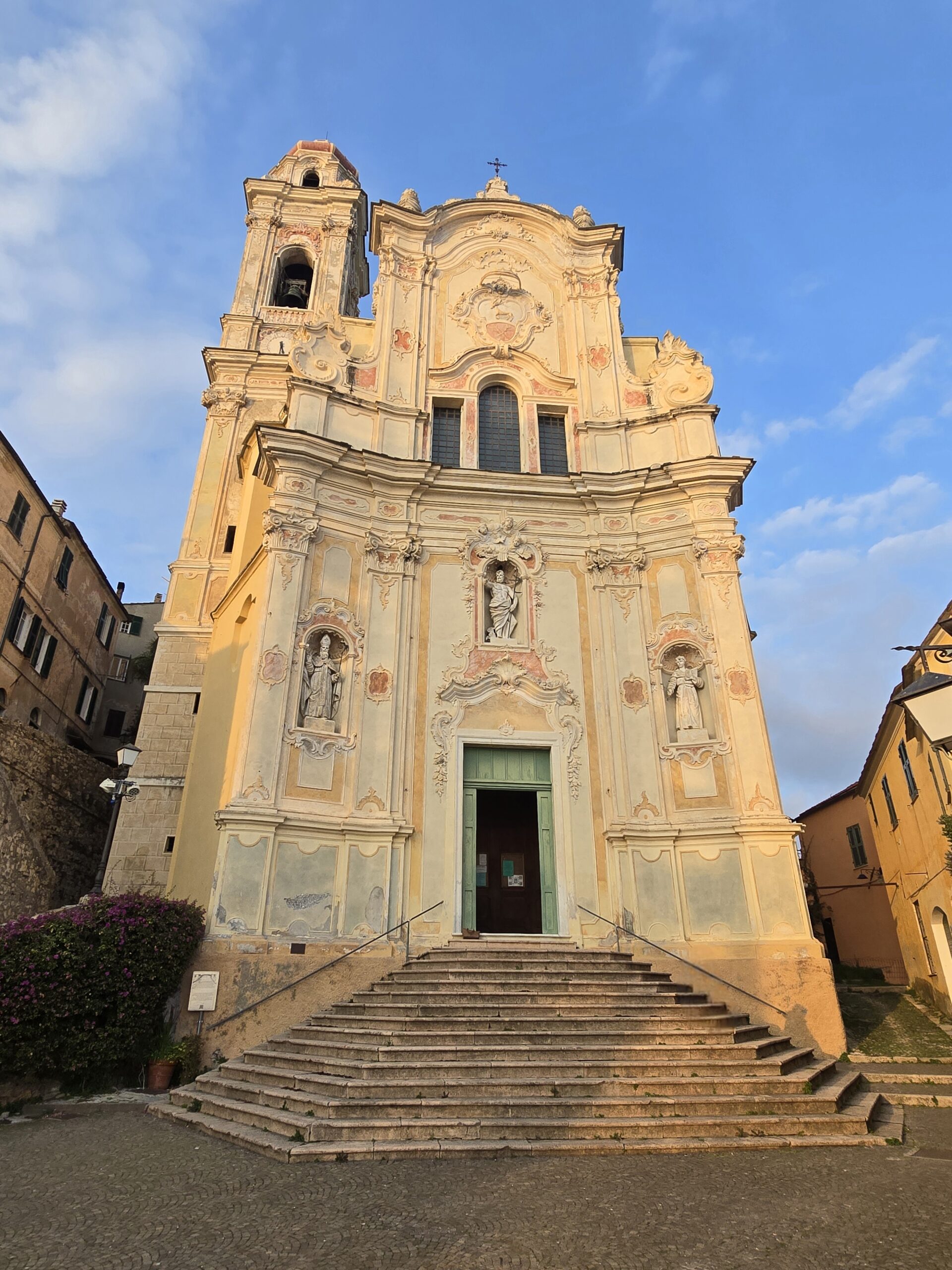 Petite balade de reconnaissance, un beau village médiéval avec des faux airs de village des 5 Terres nous tend les bras, il s’agit de Cervo qui jouxte San Bartolomeo et que l’on peut déjà admirer de l’aire.