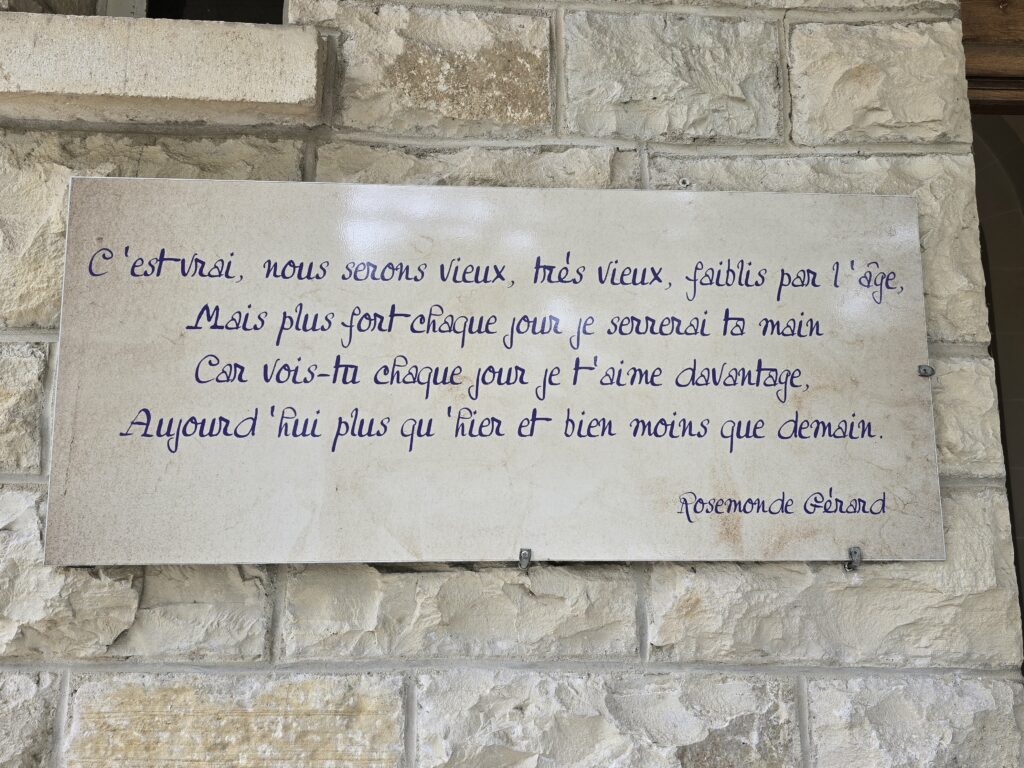 Sur le perron de la villa fugurent ces vers célèbres extraits d’un poème « L’éternelle chanson » que Rosemonde avait écrit pour Edmond Rostand. Avec son accord, un bijoutier créa en 1907 la médaille d’amour, qui fût vendu à plus d’un million d’exemplaires, et qui continue à se vendre aujourd’hui.