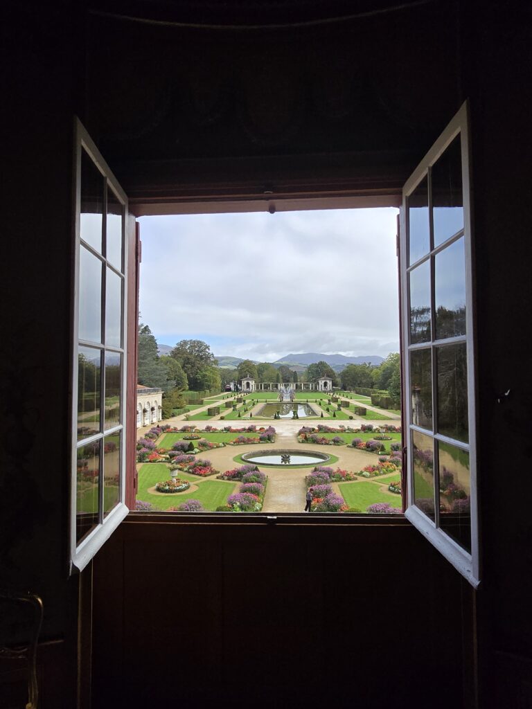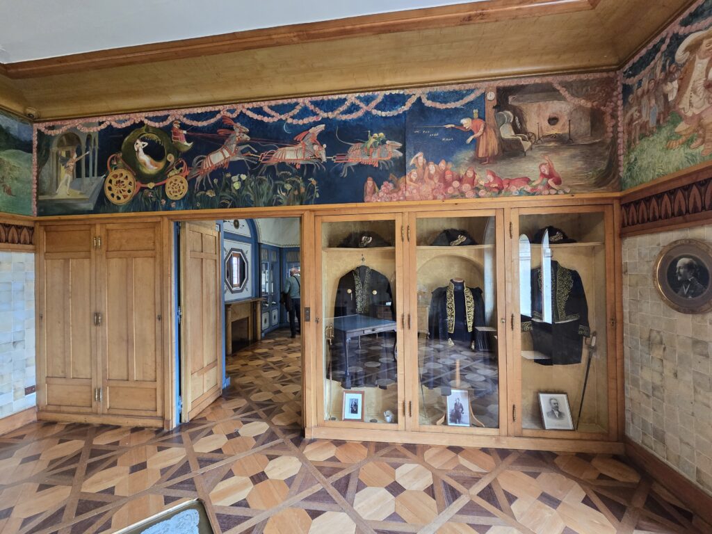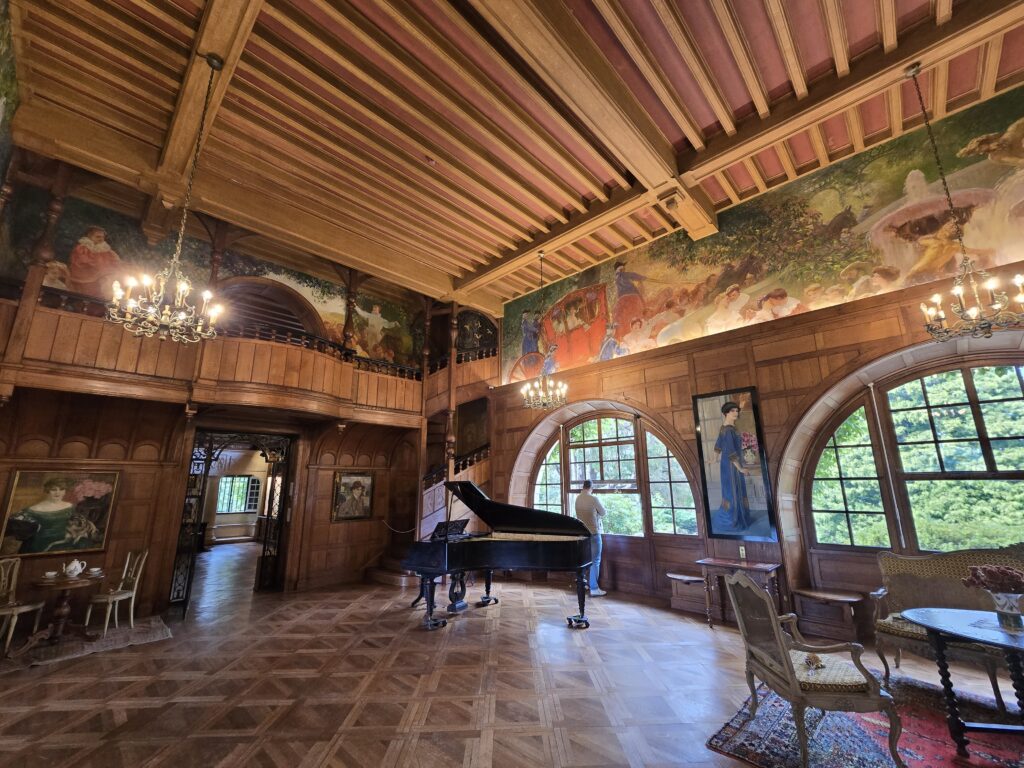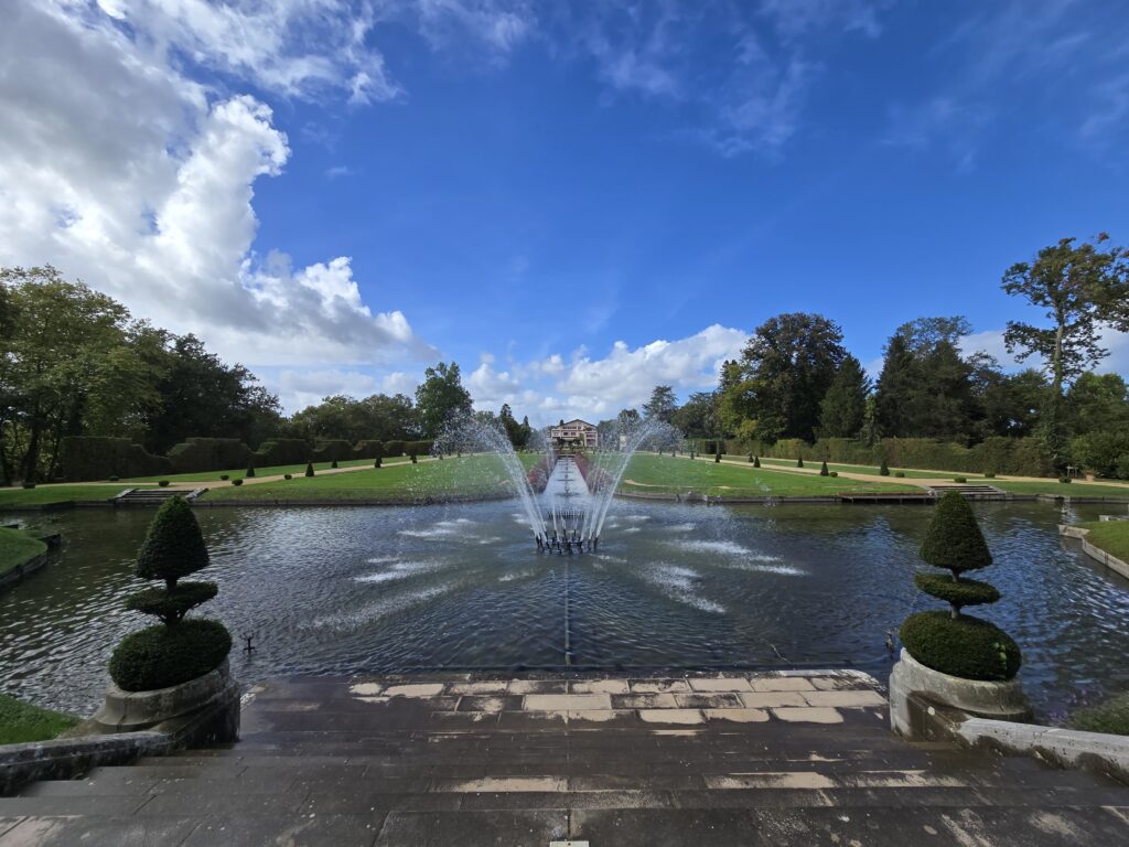 C’est une magnifique visite à ne pas manquer. Dommage qu’on n’ait pas tout le loisir de visiter l’intérieur qui est immense, 2000 m2, 40 pièces, mais n’exagérons rien, il n’y avait aucune précipitation non plus; pour l’extérieur, pas de chronomètre.