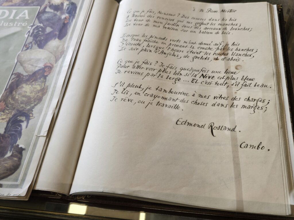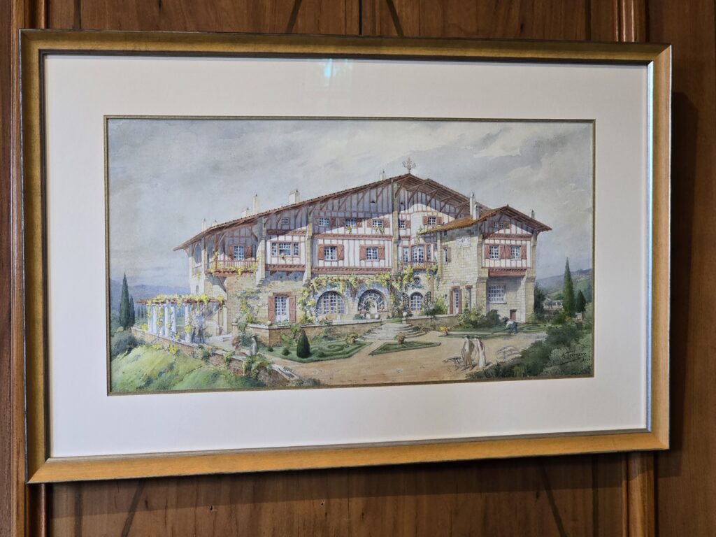 Edmond Rostand était parisien, mais souffrant d’une maladie pulmonaire, son médecin lui conseilla de venir en convalescence dans la région. Il loua une maison à Cambo, tomba amoureux du pays basque et sa santé s’améliorant, il décida de s’y installer et acheta un terrain de 17 hectares sur lequel il fit bâtir cette magnifique villa de style néobasque entre 1903 et 1906. A la fin de la guerre, il monta à Paris pour festoyer avec ses amis et décéda de la grippe espagnole, il avait 50 ans.