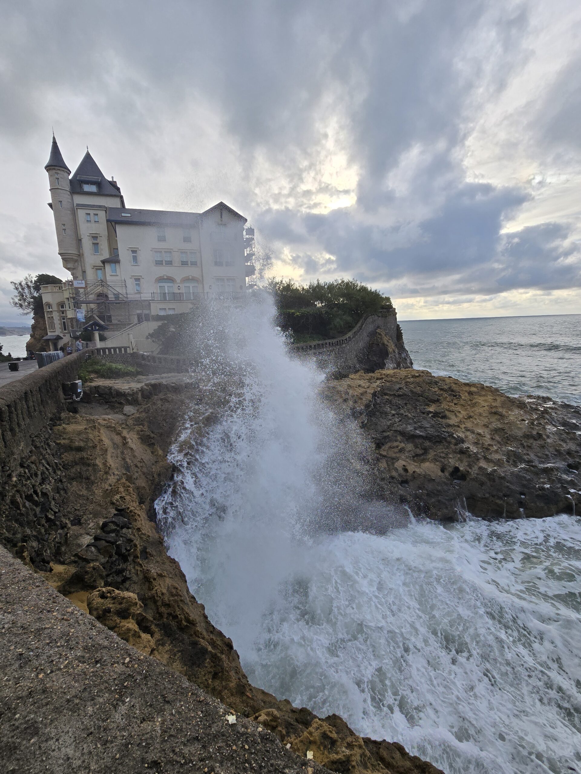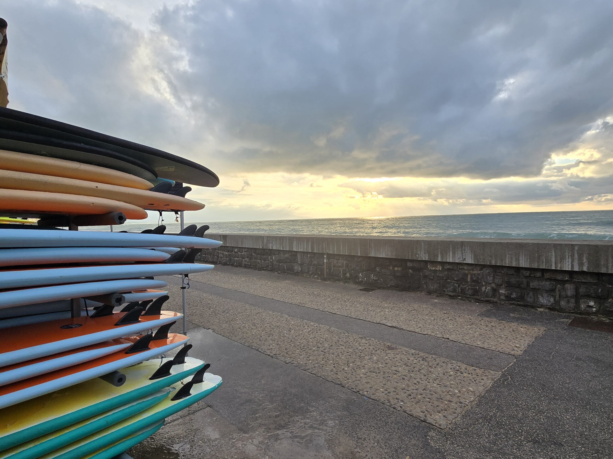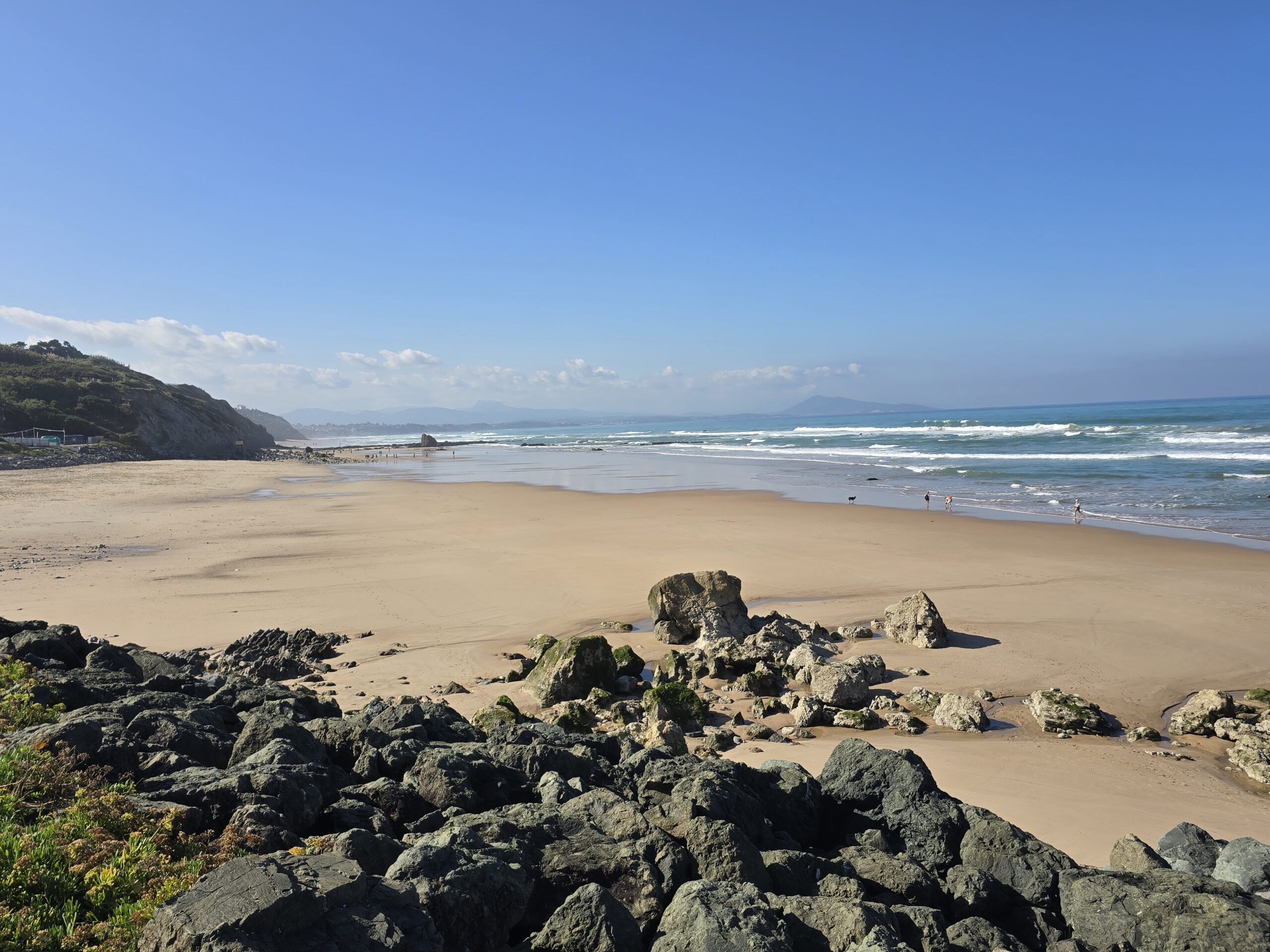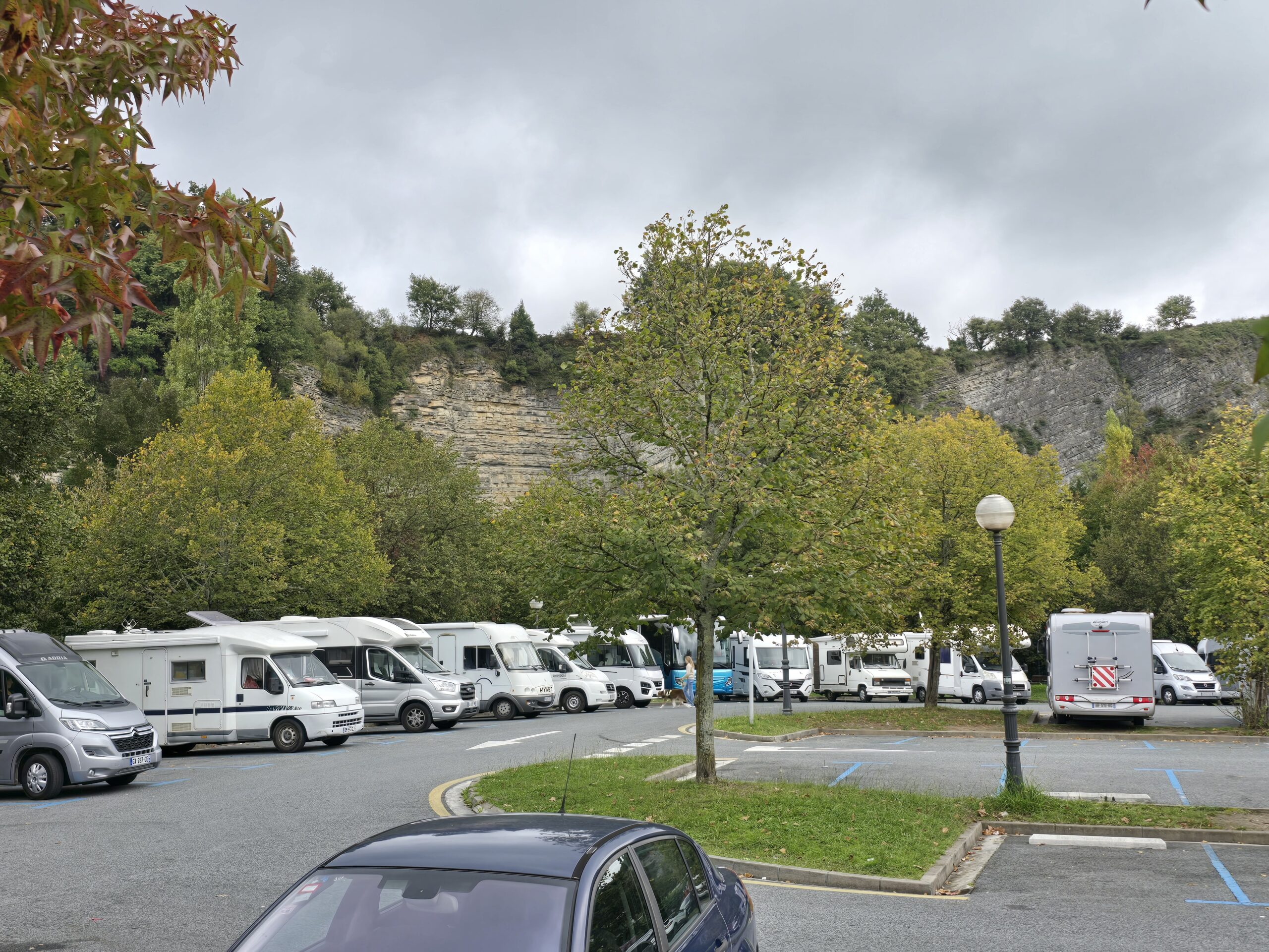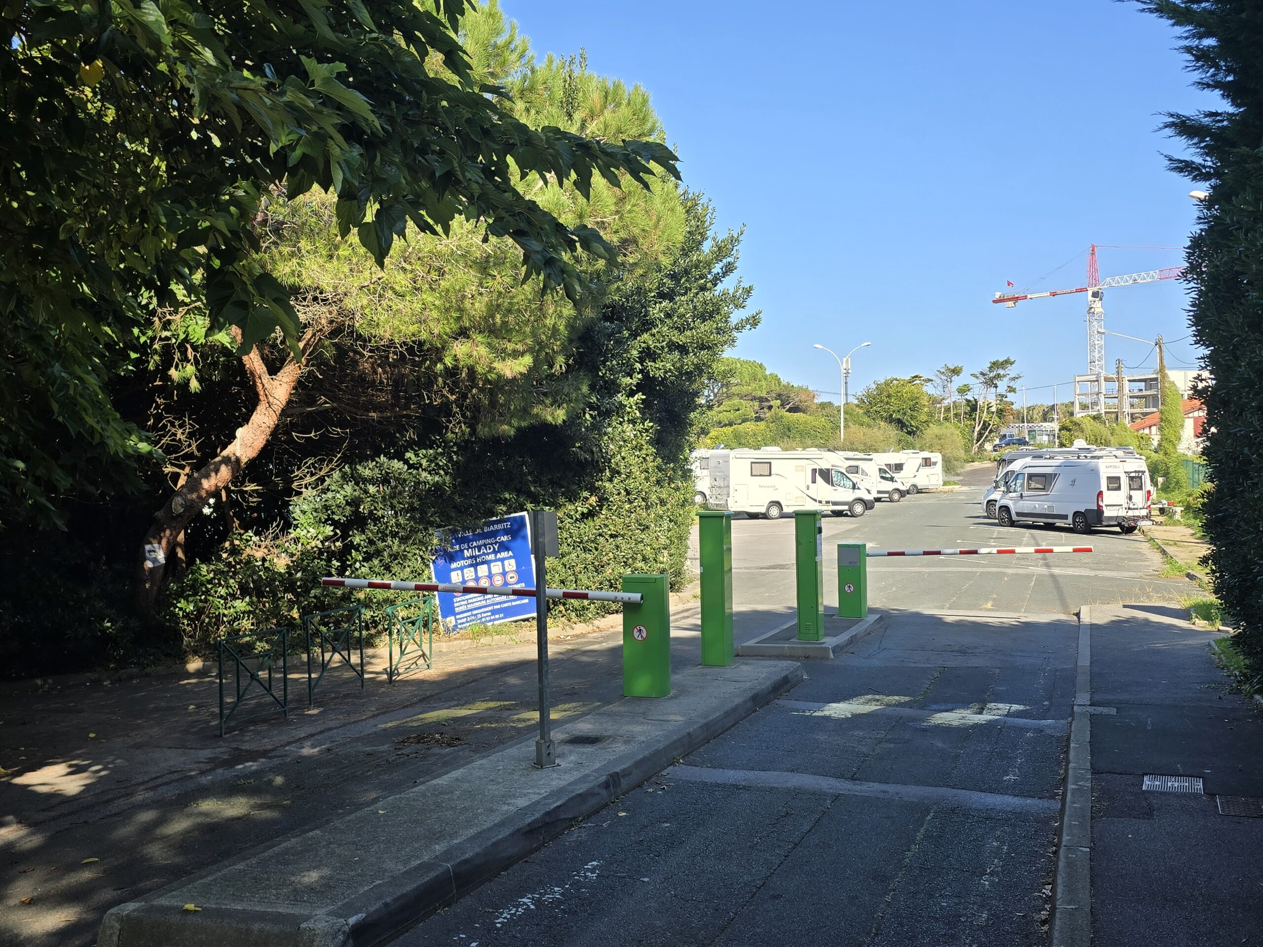 Deux heures plus tard environ, nous sommes déjà de retour en France en vue de rejoindre Biarritz ou Anglet. L’aire CCPark de Biarritz (ancienne aire municipale) est toujours au complet sur le site mais en quittant l’Espagne, je vois qu’il reste 2 places. Presque arrivés, il en reste une et nous réussissons à entrer. Il y a pourtant une dizaine de places libres mais il doit y avoir d’une part, les réservations, et d’autre part, quand on quitte une aire CCPark, on ne nous demande pas si c’est une sortie provisoire ou définitive, le compteur doit donc rajouter les places seulement lorsque les 24 heures sont écoulées.