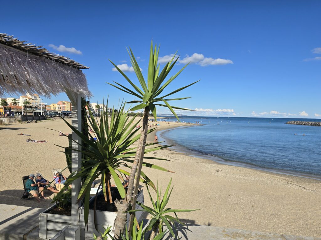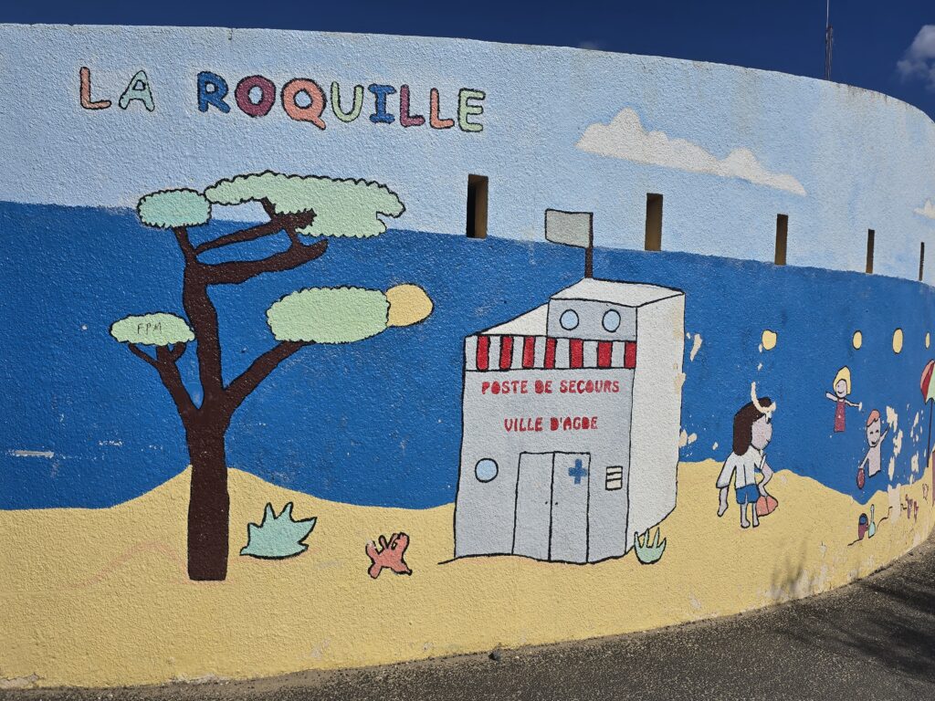 Direction Le Cap d’Agde où une amie de région parisienne a une résidence secondaire. Nous nous y étions arrêtés en septembre 2017. Nous stationnons sur l’aire, très peu de ccars ; la dernière fois, elle était au complet et nous avions dû aller au camping qui se trouve juste en face.