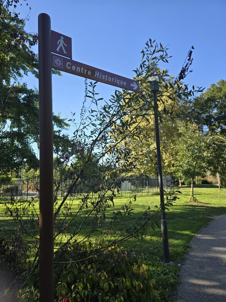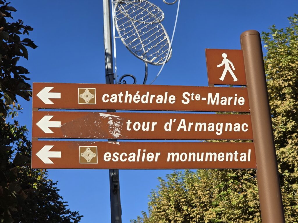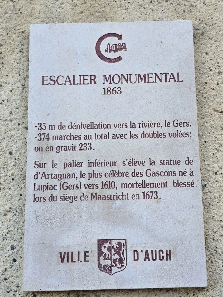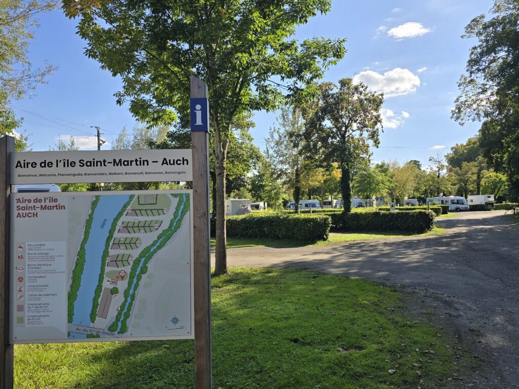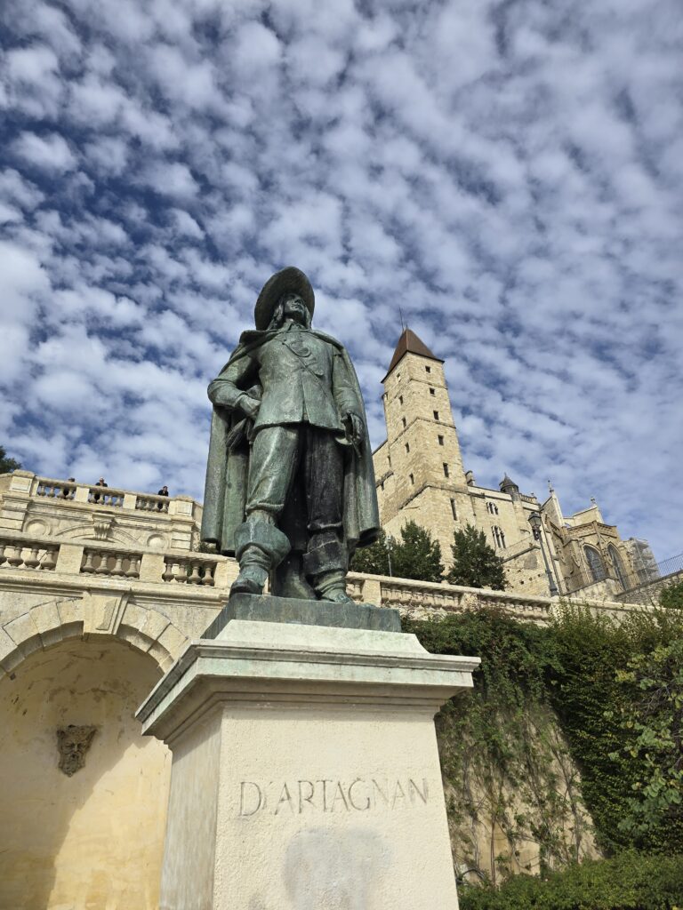 Demi-tour, nous continuons notre route et stoppons à Auch dans le Gers. L’aire doit être un ancien camping municipal. Verdoyante, des places bien délimitées, 13€20 avec l’eau et l’électricité. Il y a juste à traverser la route et une chouette promenade bien indiquée (ce qui n’est pas toujours le cas), nous conduit jusqu’au centre-ville en 1/4 d’heure à pied.