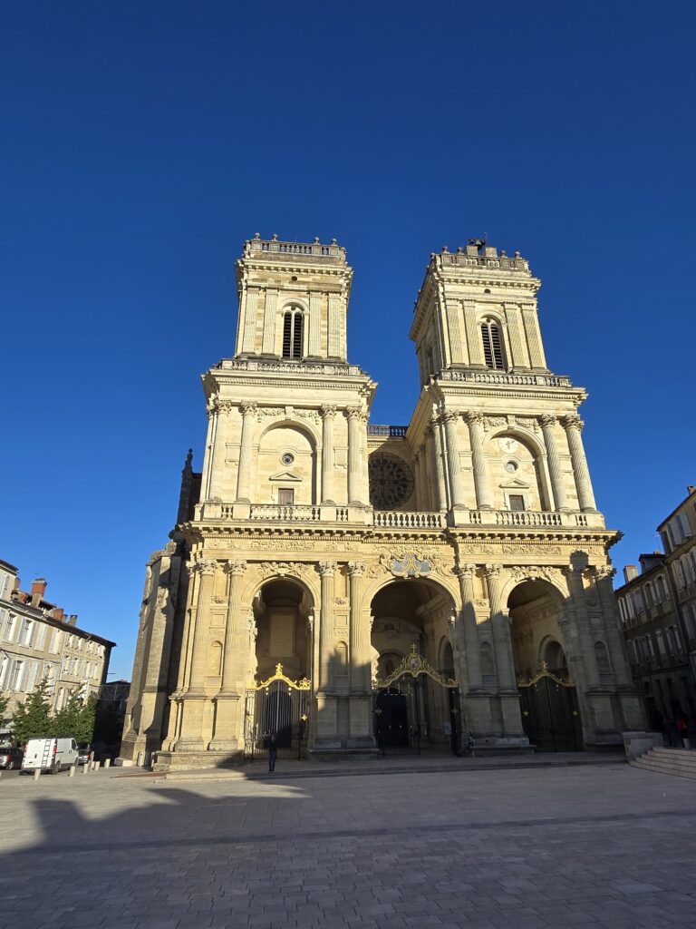 Cette cathédrale est magnifique, les pierres dorées par le soleil ressortent bien sous le bleu du ciel.