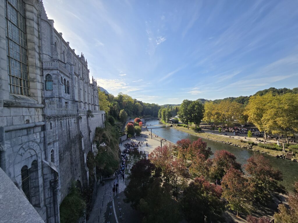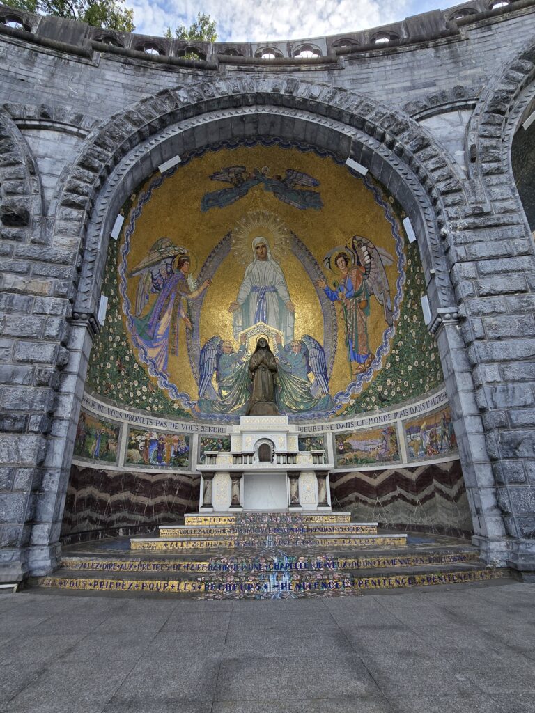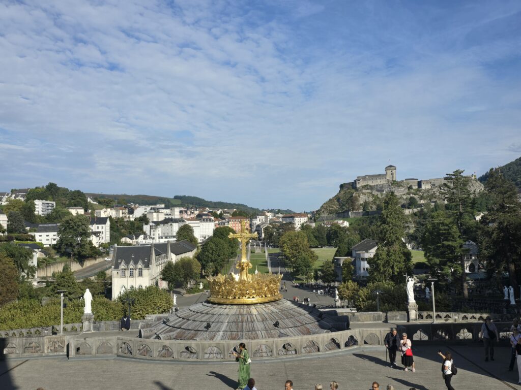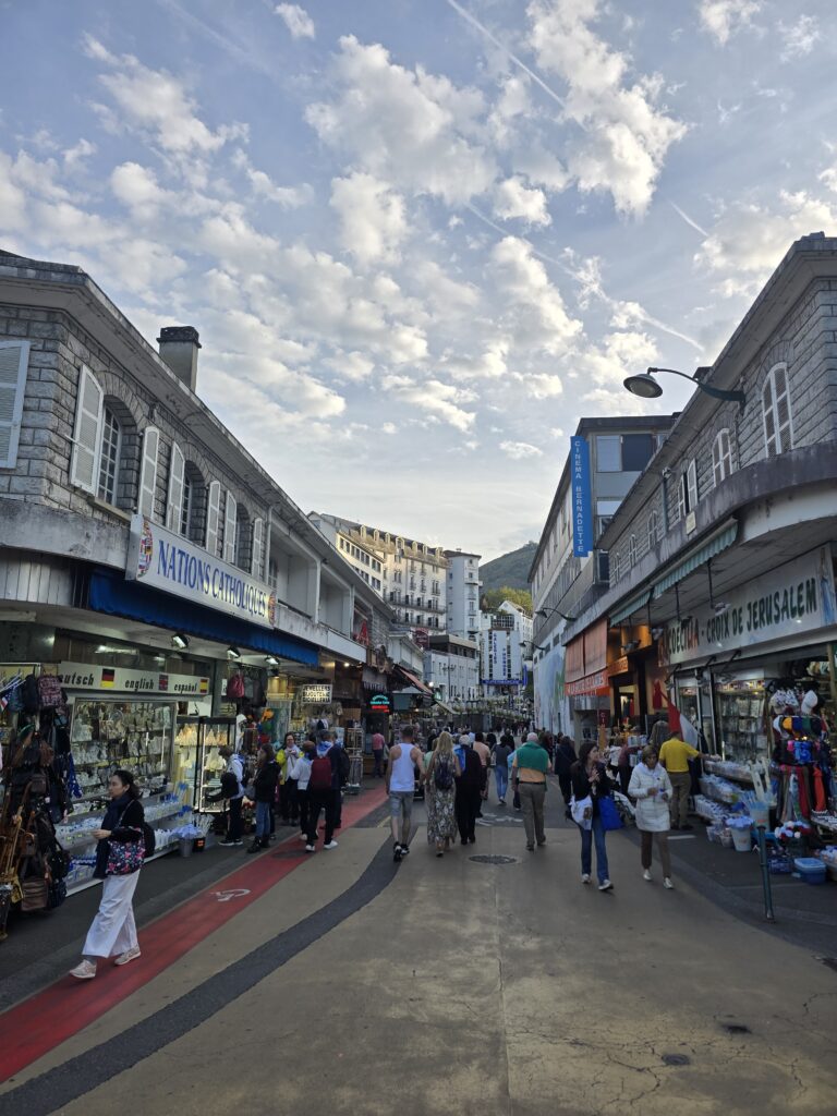 Succession d’hôtels le long de la rivière (Le Gave), quantités de magnifiques bus de voyage en provenance de différents pays, multitude de magasins de souvenirs religieux et enfin le site, immense et verdoyant, magnifique ! C’est à voir ! Lourdes est le plus grand lieu de pèlerinage catholique du monde … quand même ! Et sans vouloir froisser personne, ce doit être une affaire bien lucrative et qui a mis sur la scène internationale un petit village sans prétention du sud-ouest de la France. Je n’en dirais pas plus et je laisse parler les images mais c’est une visite grandiose qui m’a beaucoup impressionnée.
