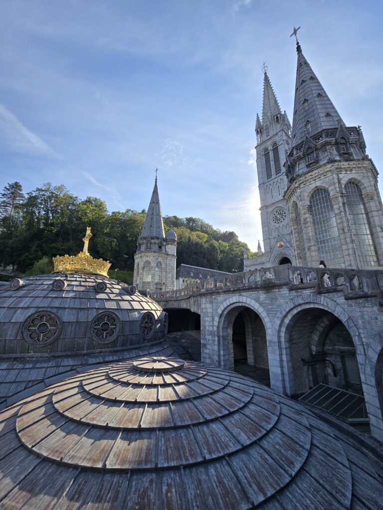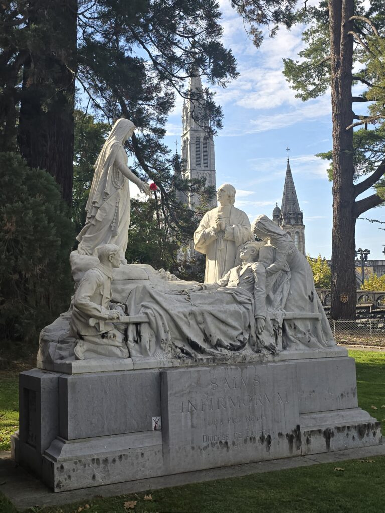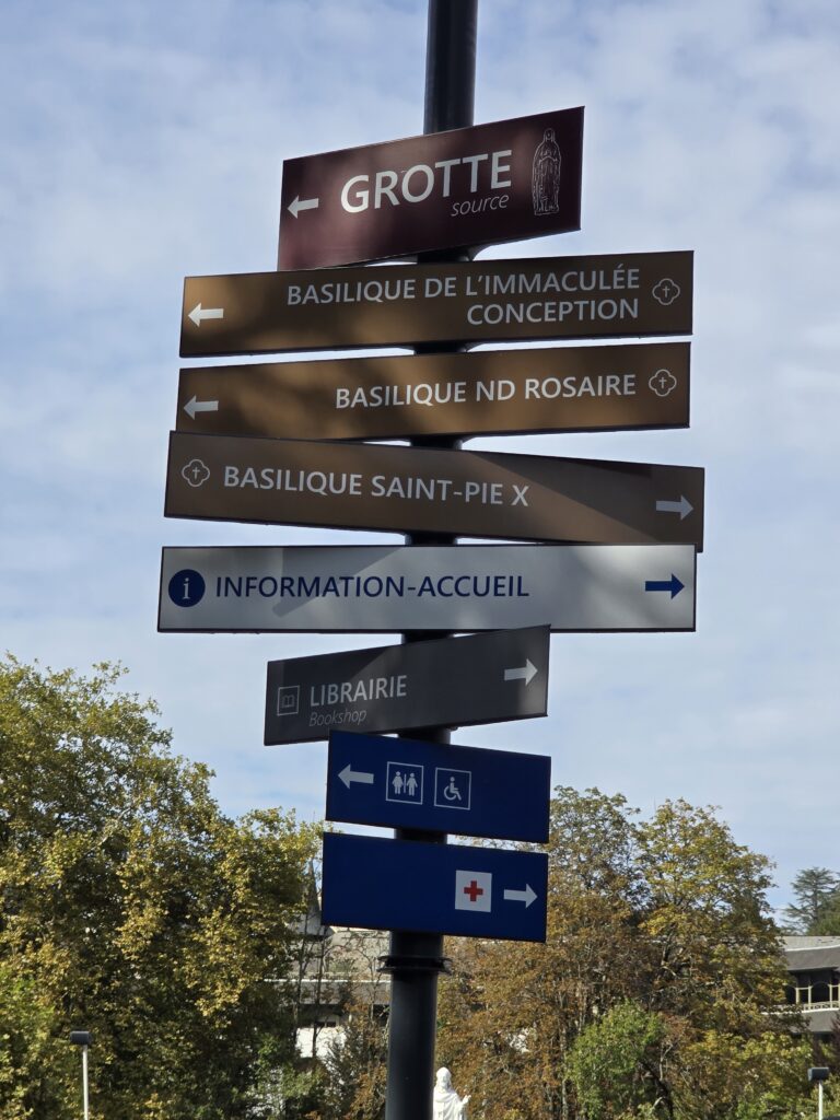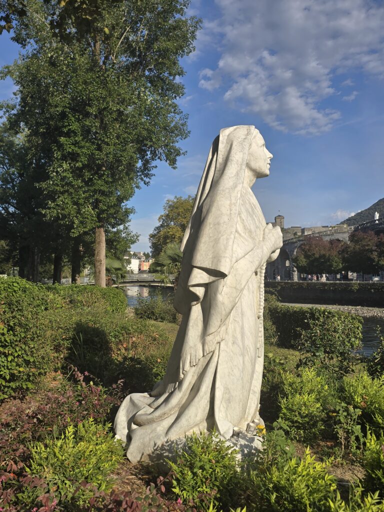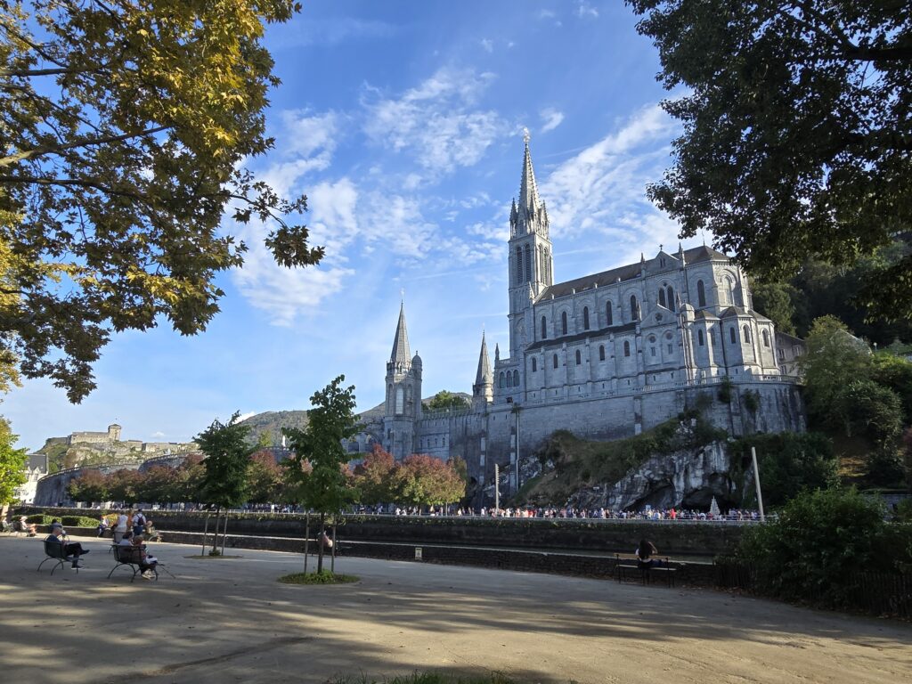 Succession d’hôtels le long de la rivière (Le Gave), quantités de magnifiques bus de voyage en provenance de différents pays, multitude de magasins de souvenirs religieux et enfin le site, immense et verdoyant, magnifique ! C’est à voir ! Lourdes est le plus grand lieu de pèlerinage catholique du monde … quand même ! Et sans vouloir froisser personne, ce doit être une affaire bien lucrative et qui a mis sur la scène internationale un petit village sans prétention du sud-ouest de la France. Je n’en dirais pas plus et je laisse parler les images mais c’est une visite grandiose qui m’a beaucoup impressionnée.