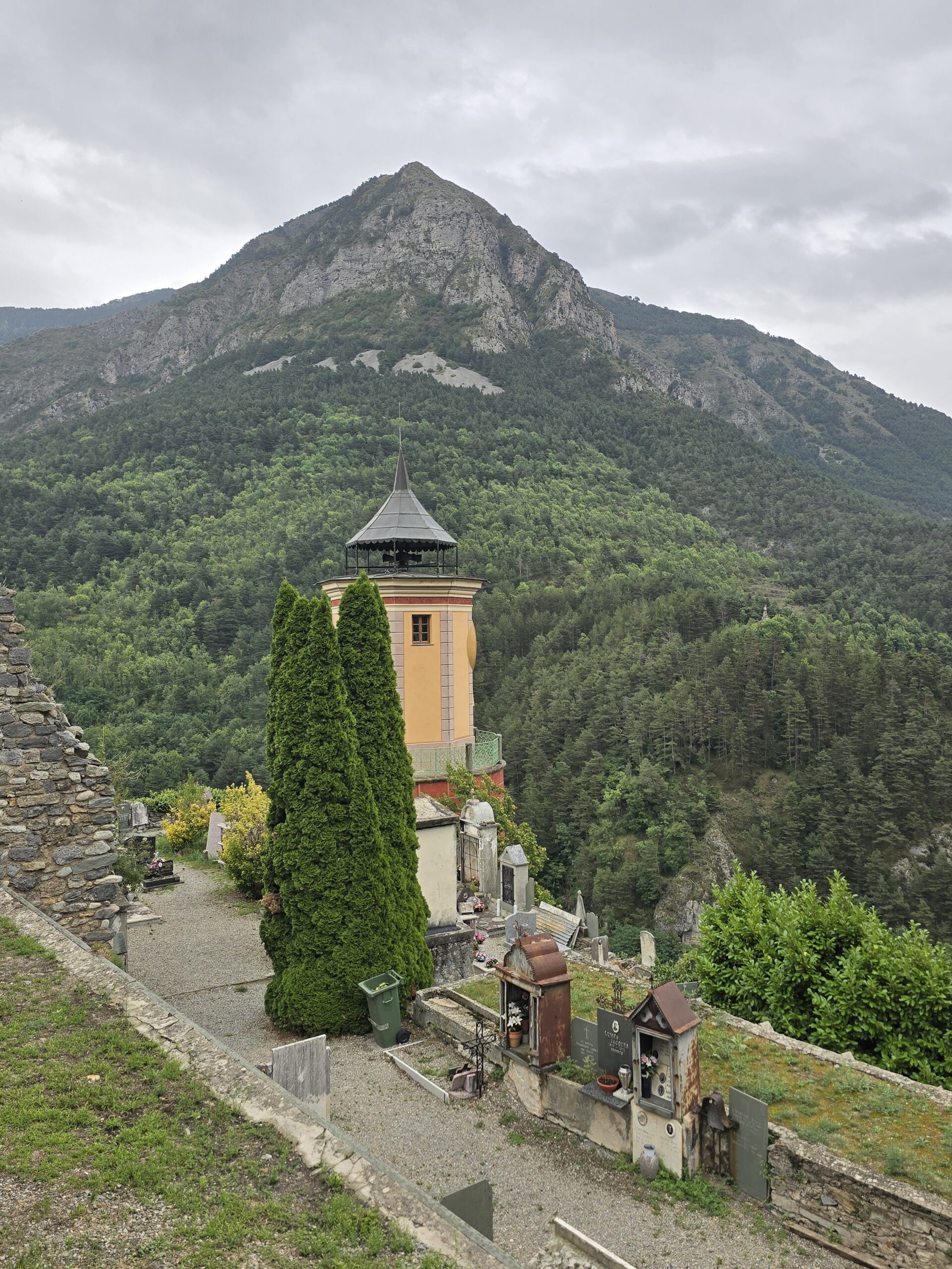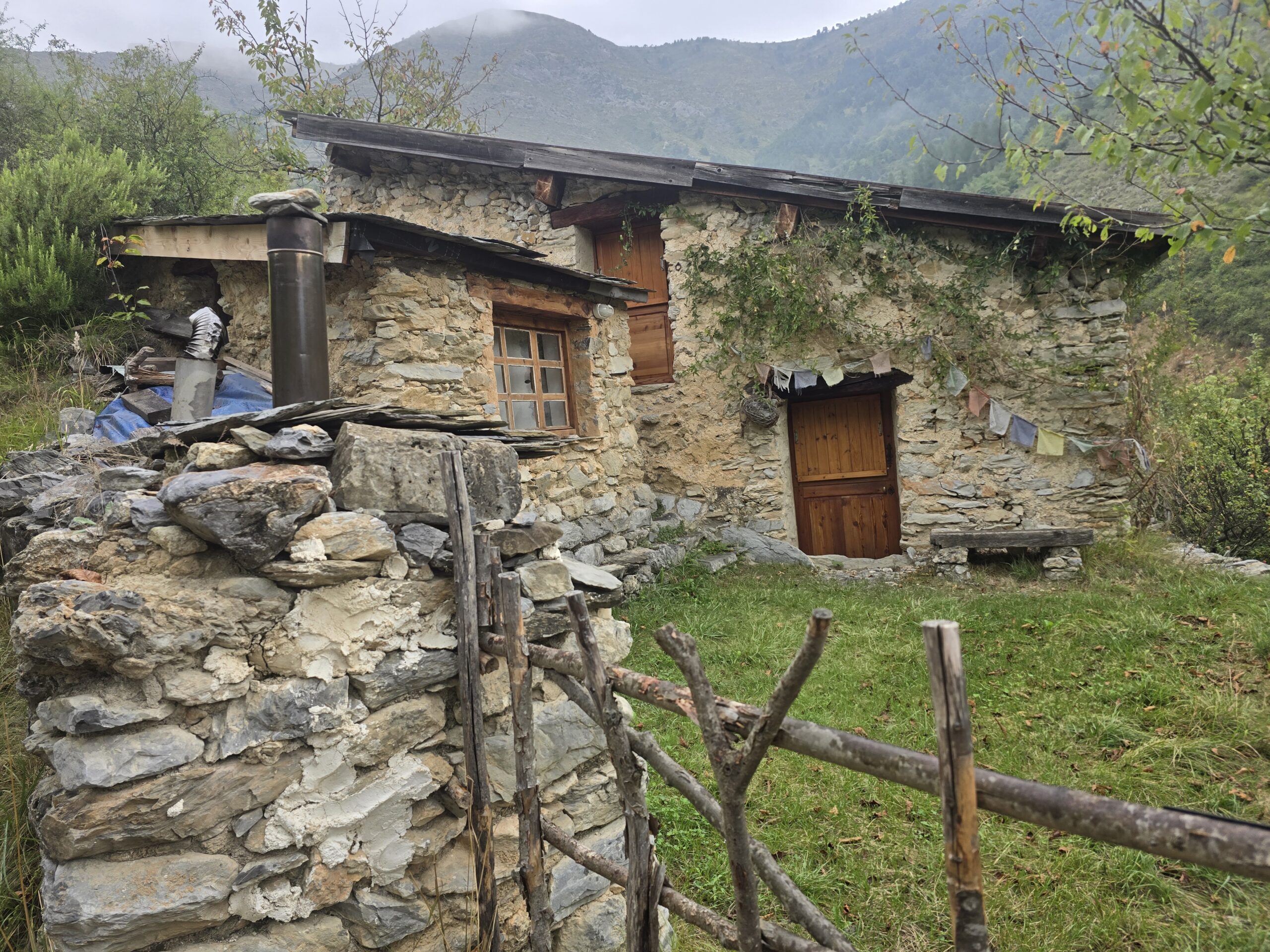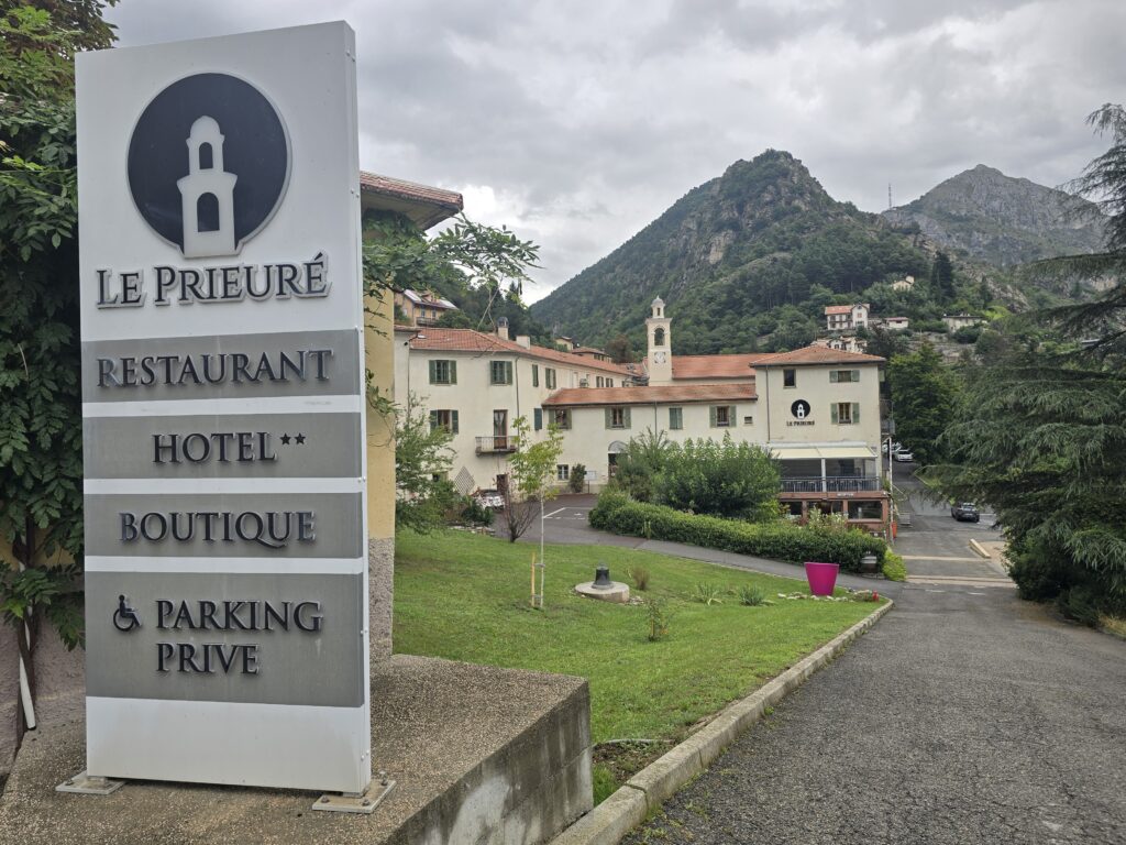 Il ne fait pas très beau aujourd’hui alors nous partons randonner dans les environs, avec en vue, un arrêt possible à l’abri pour le pique-nique à La Brigue, dans l’hôtel où loge notre guide (le notre était complet). La région est réputée aussi pour ses orages diluviens …