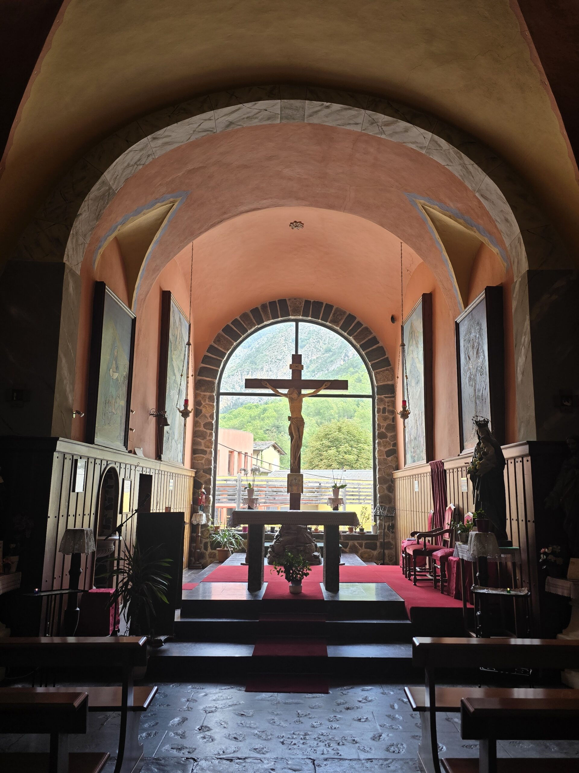 Eglise Saint-Michel de Tende dont la nef centrale vitrée offre une superbe vue sur la montagne :