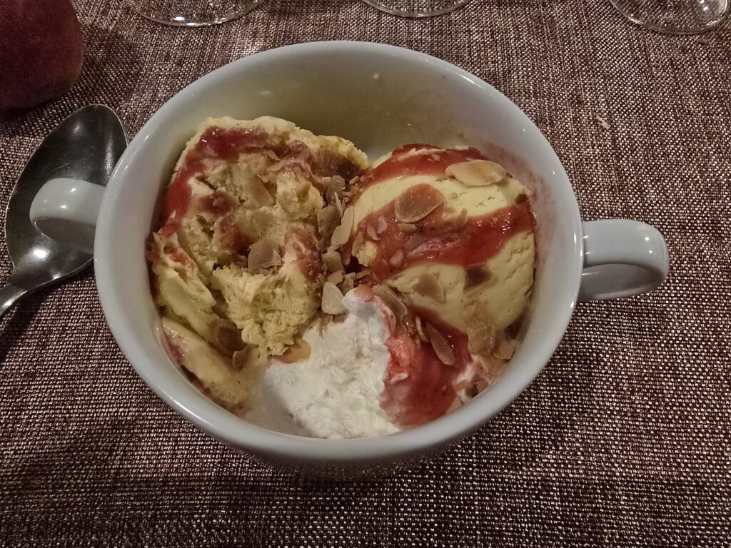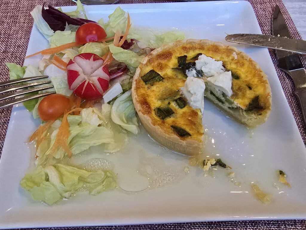 Les diners à l’hôtel, comprenaient une entrée, un plat et un dessert et étaient très corrects. Il faut ajouter qu’une partie du personnel était constituée de jeunes handicapés adorables, serviables et vraiment attachants.
